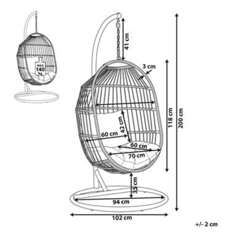 Aanbod omvat: 1 x Stoel, 1 x Kussen, 1 x Zitkussen, 1 x Standaard