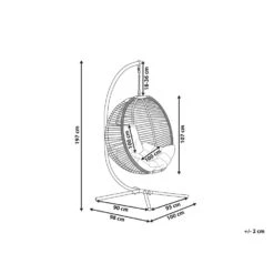 Hangstoel met een zitkussen. Deze hangende eierstoel biedt dankzij de zachte schommelbeweging een comfortabele plek voor iedereen die wat vrije tijd nodig heeft. De stevige standaard is gemaakt van robuust metaal dat de stabiliteit van het stuk en de lange levensduur garandeert. De zitting is geweven met polyesterdraad en zorgt in combinatie met het meegeleverde donzige zitkussen voor een gevoel van gezelligheid. Bovendien heeft dit meubel, dankzij de toepassing van een thermische spuitafwerking, een weerstand waardoor het niet alleen binnen maar ook buiten kan worden gebruikt.