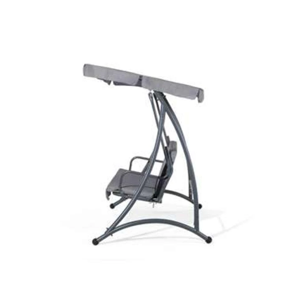 Schommelbank – donkergrijs – Temple. Deze schommelbank betovert door zijn zachte kleuren en zijn strakke vorm, die door het zonnedak wordt vervolmaakt. Deze is niet alleen op esthetische gronden toegevoegd, maar ook om je te beschermen tegen de sterke zonnestraling. Het zonnedak aan de schommel verzekert je van een koele schaduw, zo kun je aangenaam schommelen en ontspannen. Voor optimaal comfort zijn zitkussens toegevoegd, want deze hebben een bijzonder zachte vulling en zijn met stof bekleed. Opdat je je veilig voelt op de schommelbank, is hij voorzien van een bijzonder stabiel onderstel. Deze bestaat uit gepoedercoat staal, wat zeer robuust, weersbestendig en ook onderhoudsarm is. Wanneer je lekker wilt genieten van deze zomer, schaf dan beslist een schommelbank aan!