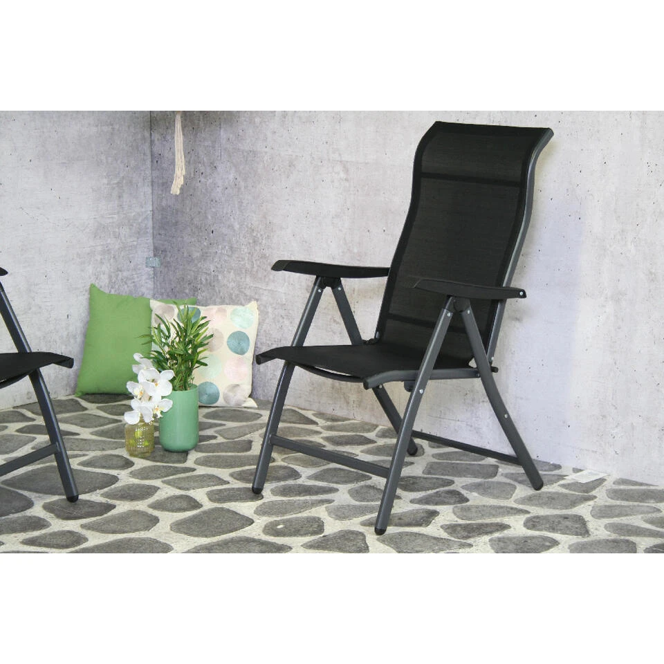 Tuinstoel Sardinië blinkt uit in het comfort van een verstelbare tuinstoel. Zo kun je uren doorbrengen op deze buitenstoel. De zwarte bekleding geeft de stoel een moderne uitstraling.