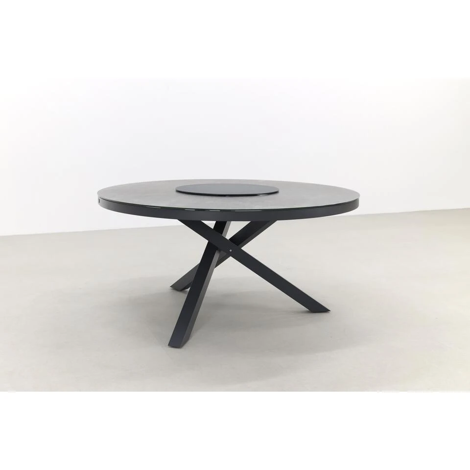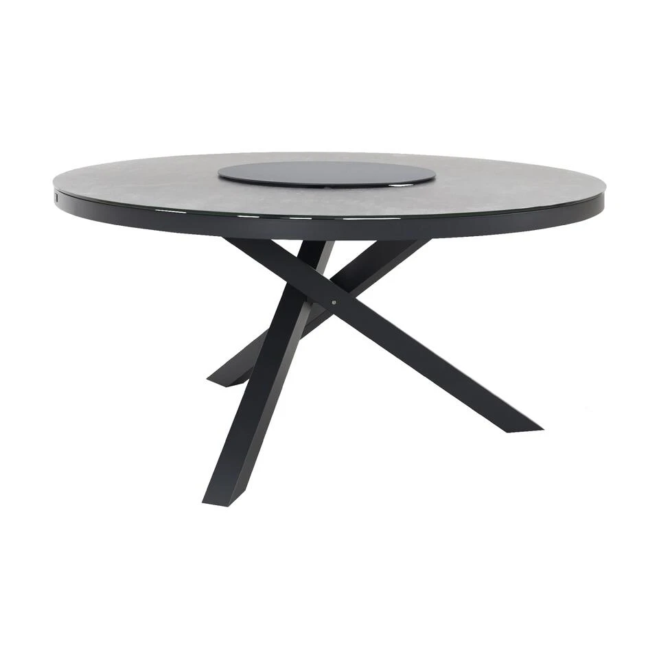 De poten van de Ronde tuintafel Perth hebben een kruisvorm en zijn gemaakt van aluminium. Dit materiaal is licht van gewicht, stevig en het materiaal kan niet gaan roesten. Dit maakt dat het het perfecte materiaal is voor de ronde tuintafel. Het tafelblad is van keramiek. Dit is een harde steensoort die gespoten is op een plaat van veiligheidsglas. Het keramiek is krasvast, hitte bestendig en uv bestendig. Kortom ideaal om te gebruiken als tafelblad. De lazy susan, ook wel draaiplateau genoemd, wordt standaard bij de tafel geleverd. Dit plateau is draaibaar en dus ideaal als je met meerdere mensen aan de ronde tuintafel eet. Het doorgeven wordt met het draaiplateau een feestje.Â