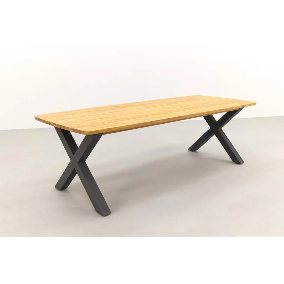 De Sefa tuintafel heeft een massief teakhouten tafelblad. Teakhout is een harde houtsoort die na verloop van tijd een grijzige gloed krijgt. Ook kunnen er barstjes en haarscheurtjes ontstaan. Hierdoor krijgt de Sefa tuintafel een nog stoerdere en natuurlijkere uitstraling. Dit natuurlijke proces doet geen afbreuk aan de kwaliteit van de tuintafel. Mocht je de originele kleur van het teakhout willen behouden dan adviseren wij om het tafelblad te behandelen met een teakprotector. Het stevige frame waarop het teakhouten tafelblad is bevestigd is gemaakt van aluminium. Aluminium heeft als voordeel dat het erg licht van gewicht is en weinig onderhoud nodig heeft. Daarnaast is het ook nog eens afgewerkt met een antraciet kleurige coating voor extra bescherming.
