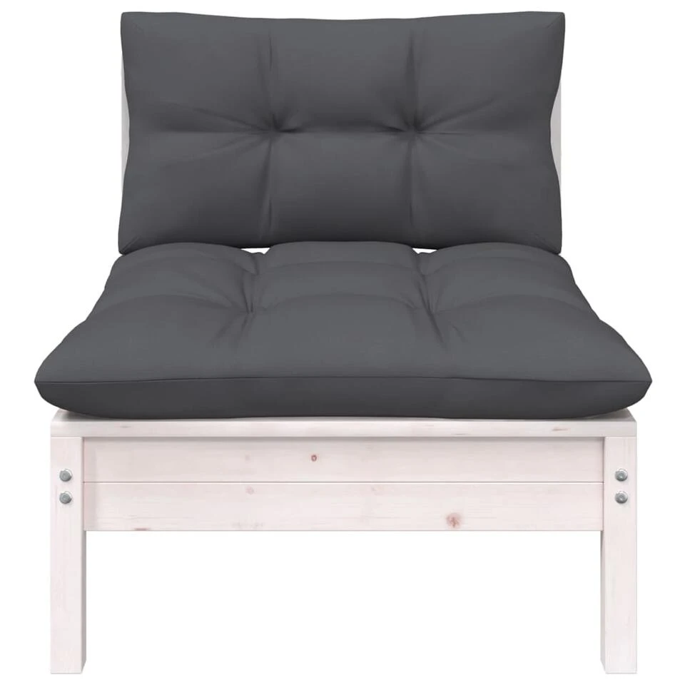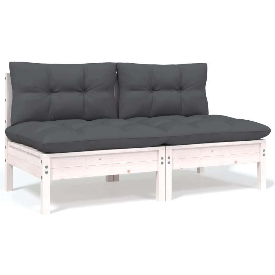VidaXL Tuinbank 2-zits Met Kussens Massief Grenenhout Wit