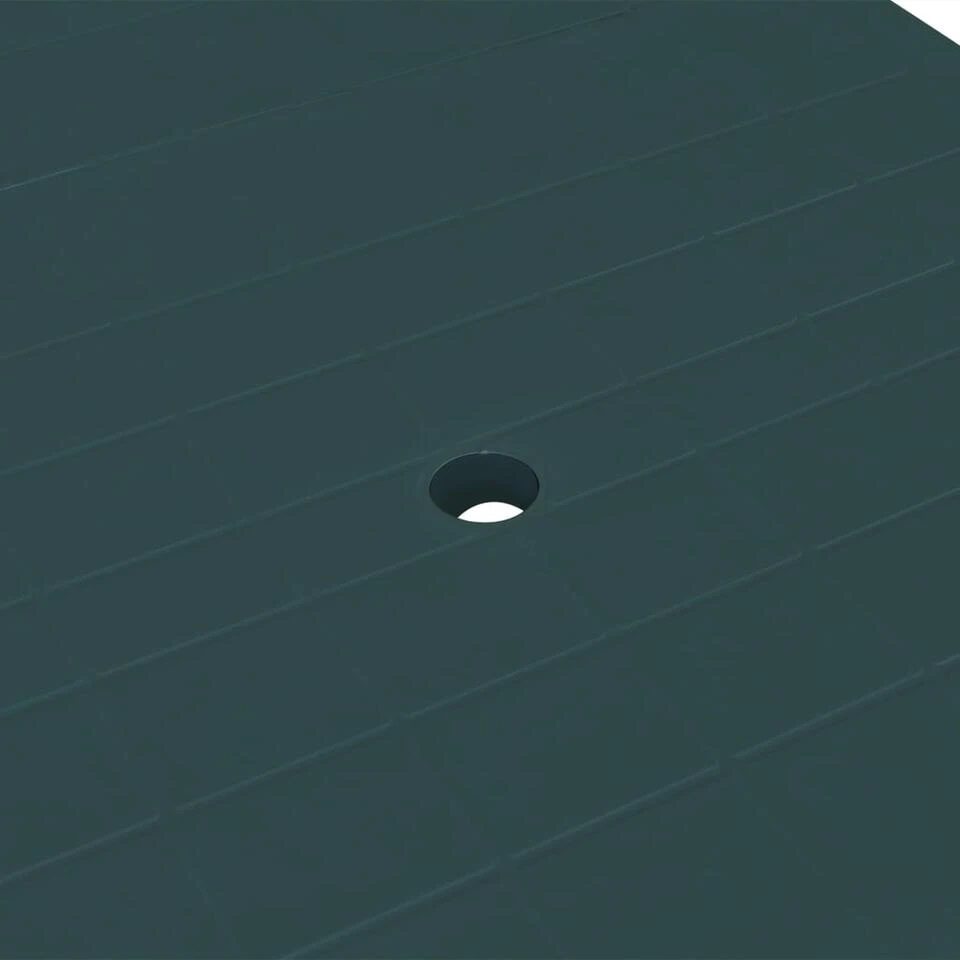 De buitentafel is gemaakt van duurzaam kunststof, dit maakt hem weerbestendig en makkelijk schoon te maken. De tafel heeft een parasolgat zodat je een parasol met de tafel kunt gebruiken en koel in de schaduw kunt zitten. Hij is ook lichtgewicht, hierdoor is hij makkelijk te verplaatsen. Montage is erg eenvoudig.